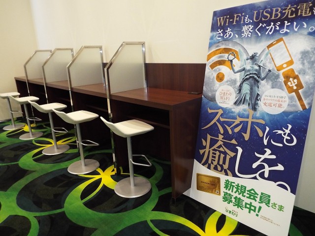 加えて、禁煙室側の机席にはケータイなどが充電できるプラグまで完備!