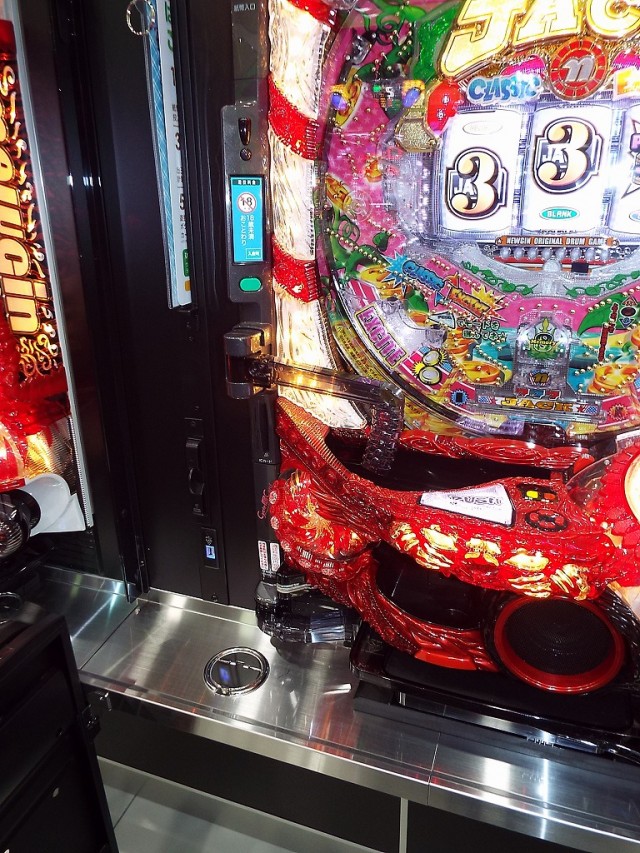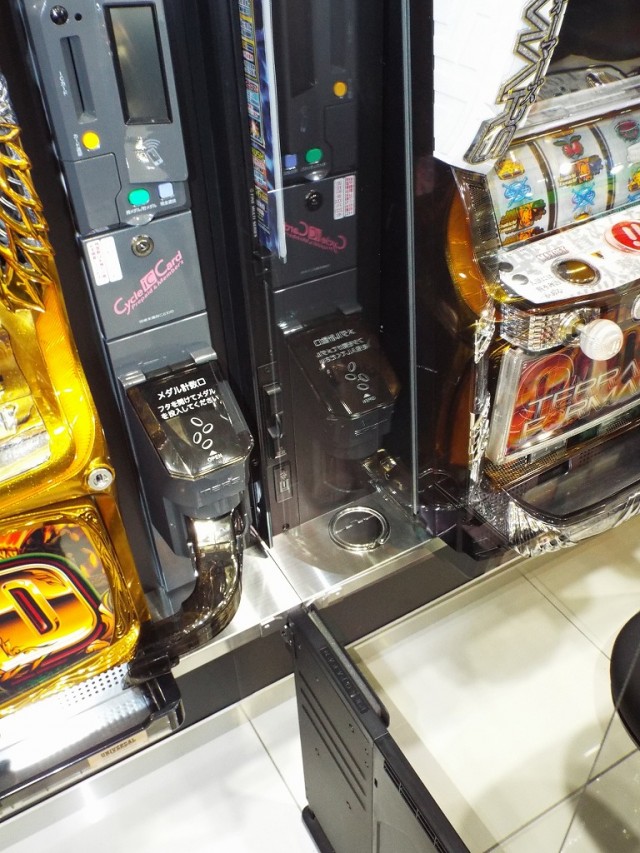 ▲全国的にもまだまだめずらしい各台メダル計数機