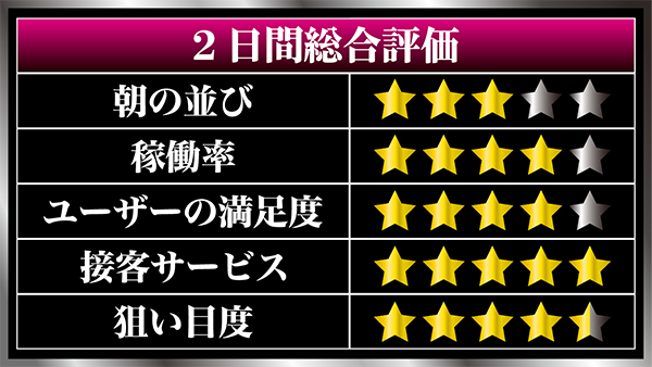 「A-SLOT偽物語」や「ハナビ」、「クランキーセレブレーション」も好評。機種の醍醐味をあじわえているようなプレイヤーは、充実したひとときをすごせていたことだろう。