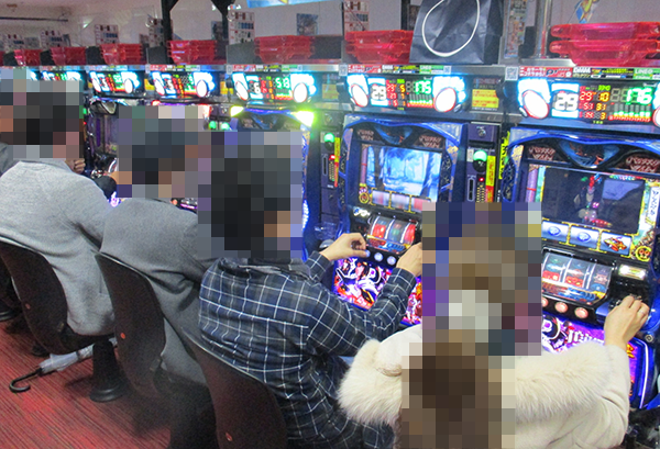 ジャグラーシリーズや「クレアの秘宝伝~はじまりの扉と太陽の石~」、「3×3EYES ~聖魔覚醒~」を筆頭に、ボーナスタイプも盛況。機種の性能を引き出せているようなプレイヤーがあちこちにみられた。