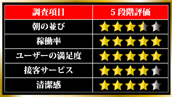 このほかにも、遊技空間から広々としたレストスペースにまで清掃が行き届き、快適な環境が整っていることも支持率の高さにつながっているように思えた。
