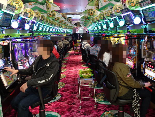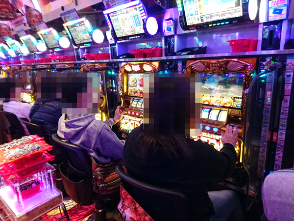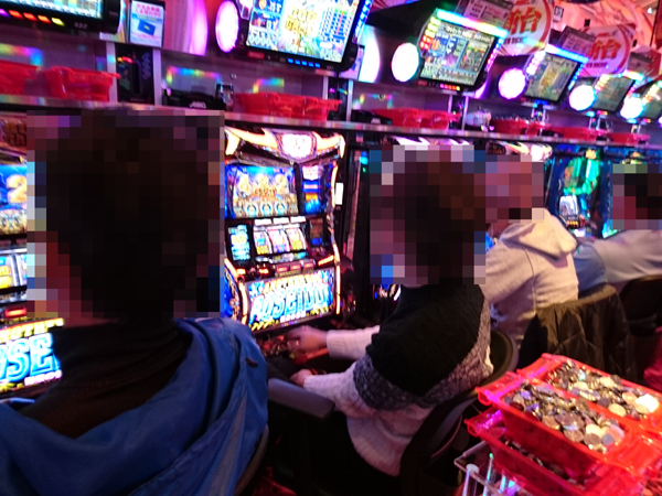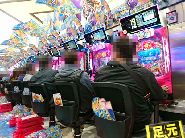 午後になると店内はさらに盛り上がり、パチンコ・パチスロ共に空台を見つけるのが大変なほどだった。