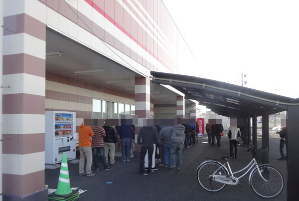 開店前における朝の並びから、スタッフたちは元気よく行動。