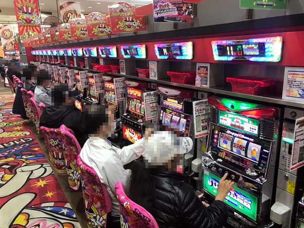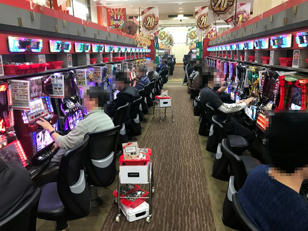 今回は夕方5時からの取材となったが、20円パチスロを中心に盛り上がっていた。