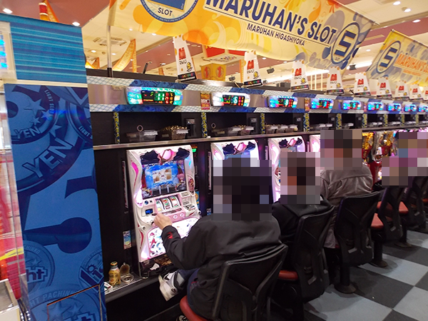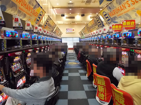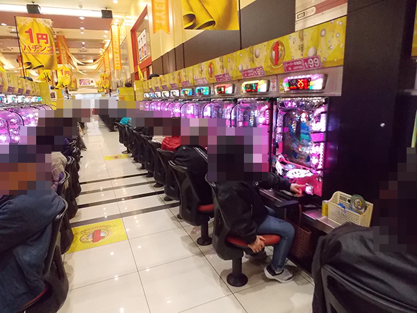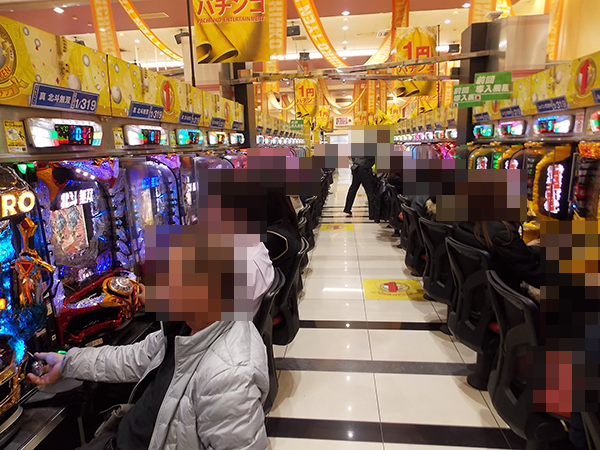 パチンコ・パチスロともににぎわっており、いたるところに華やかな光景が広がっていた。