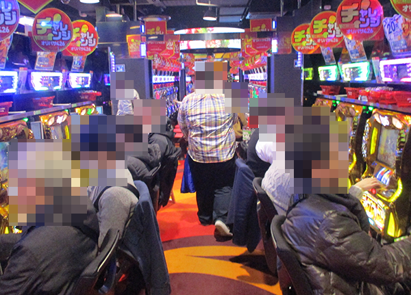 ジャグラーシリーズや「ハナビ」、「バーサス」といったボーナスタイプも盛況。イキイキとした表情のプレイヤーは、機種のもつおもしろさを味わえているように思えた。