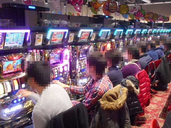 お昼を過ぎるとパチスロコーナーにひときわ高い盛り上がりを感じ、「パチスロ アラジンAⅡ」は朝と変わらず満席のまま。半数以上のプレイヤーに笑顔が見られるなど、状況もかなり良かったようだ。