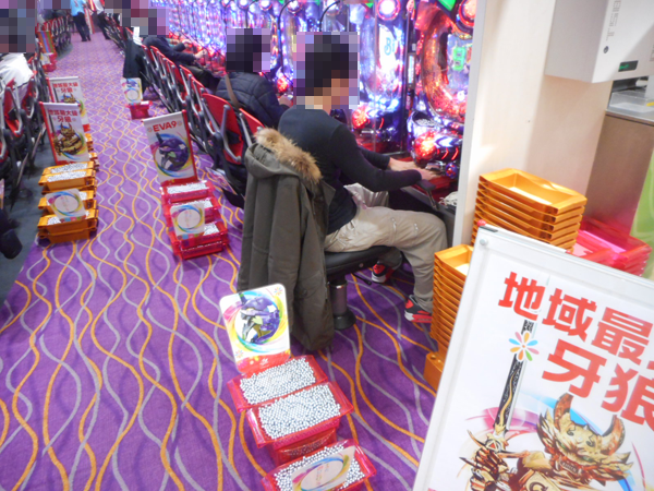 4円パチンココーナーでもっとも支持されていたのは「CR真・花の慶次」。「CRヱヴァンゲリヲン9」や「CR牙狼 金色になれ」、「CRまわるんパチンコ大海物語3」は空き台こそ多少あるものの、持ち玉で遊技をしているプレイヤーが多数見られ満足そうな表情を浮かべていた。