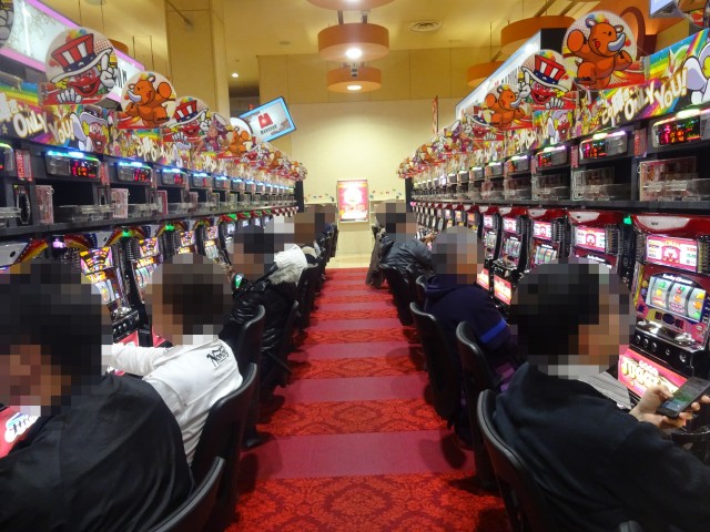 20円パチスロでは、「バジリスク~甲賀忍法帖~絆」にて、機種のポテンシャルを引き出しているといったプレイヤーを確認。シマ全体に華やかな光景が広がっていた。