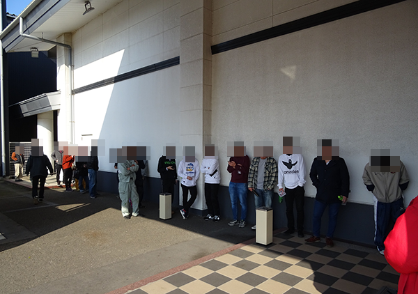 取材日である3月4日の朝の並びに集まったプレイヤーは40名前後。店の前にできた長い列からは、遊技を楽しみにしていることが伝わってきた。