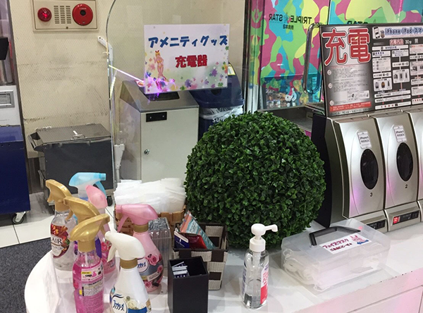 消臭スプレーやマスクといったアメニティ、携帯電話の充電器など、設備面も優れている。