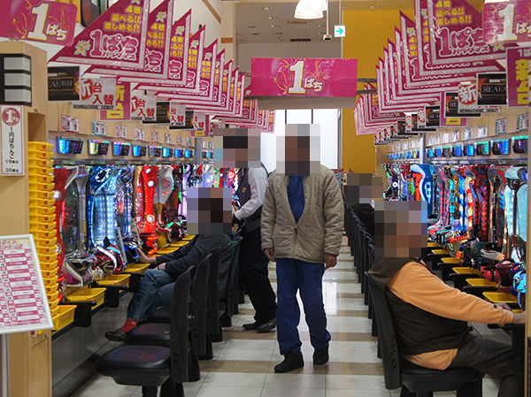 1円と2円の2種類が用意されているパチンコの低貸し玉コーナーもにぎわっていた。