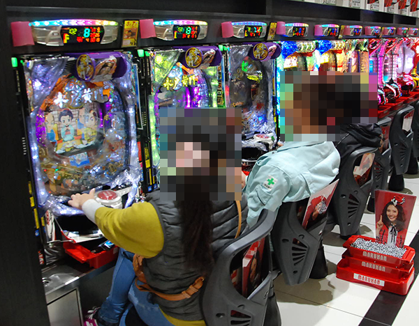 16時頃の4円パチンコでは、「CRぱちんこ水戸黄門Ⅲ」や「FEVER KODA KUMI V SPECIAL LIVE BIGorSMALL」といった新台が好評。プレイヤーたちの表情は明るく、遊技を楽しめていることがうかがえた。