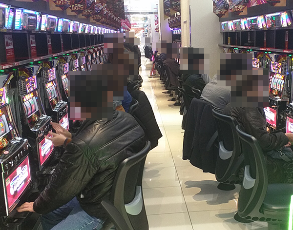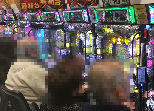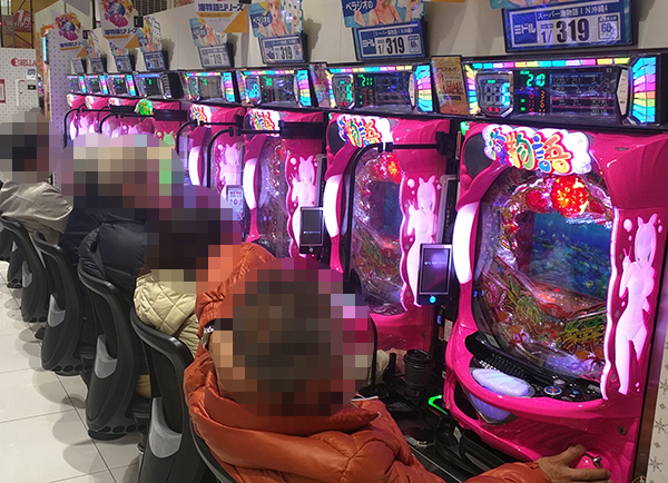 20円パチスロにおいて、にぎわっていたのがジャグラーシリーズ。シンプルな告知を味わっているような姿もみられ、心から遊技を楽しめていたように思う。