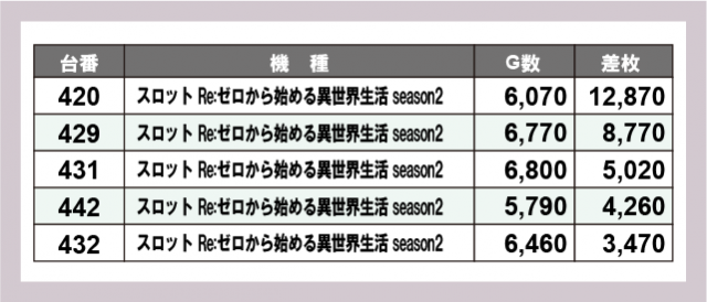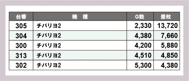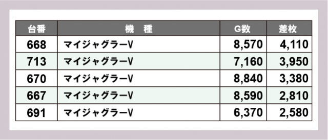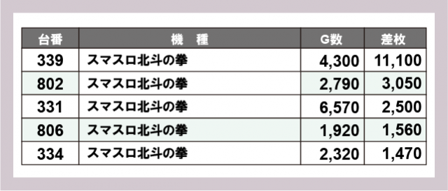 ※差枚数順に掲載しています