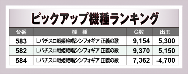 ※出玉数順に掲載しています