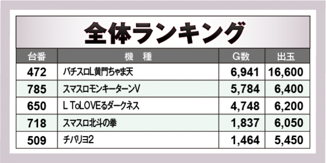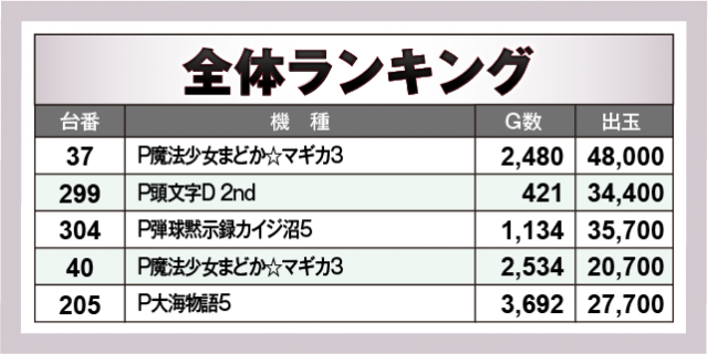※出玉数順に掲載しています