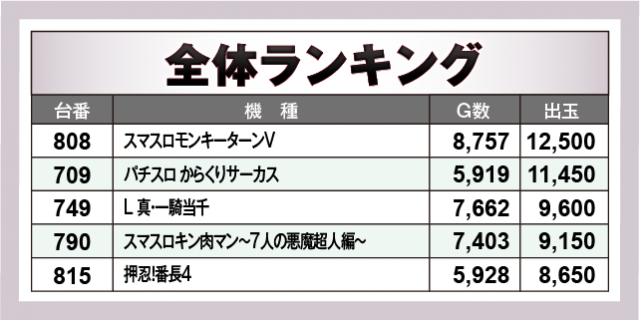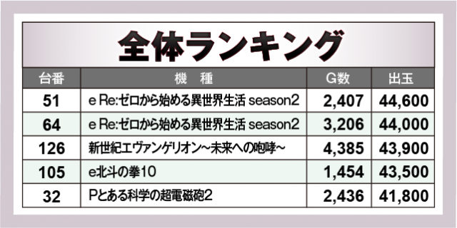 ※出玉数順に掲載しています