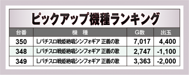 ※出玉数順に掲載しています
