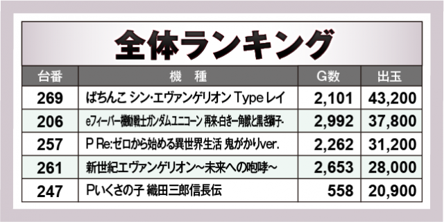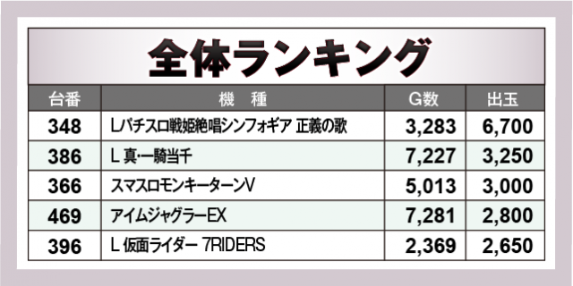 ※出玉数順に掲載しています