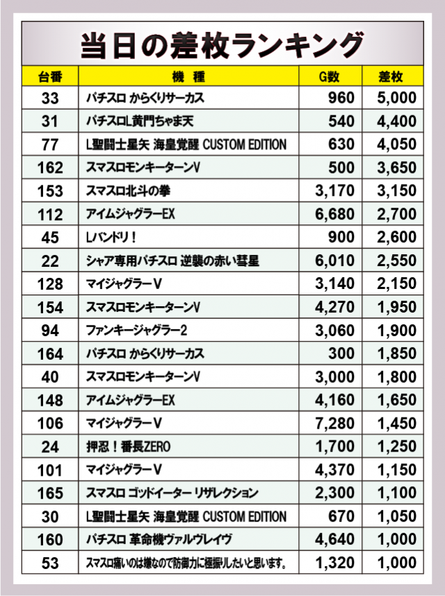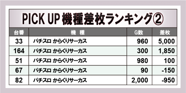 ※差枚数順に掲載しています。
