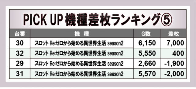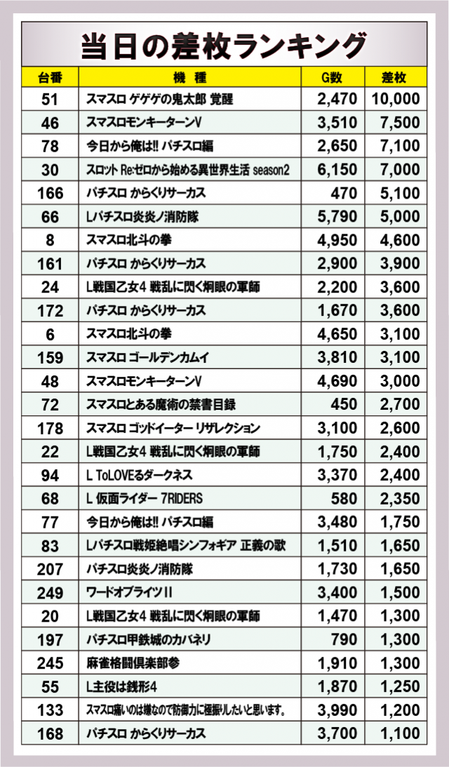 ※差枚数順に掲載しています。