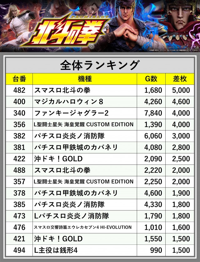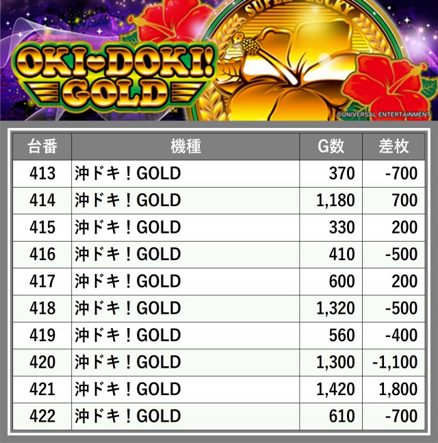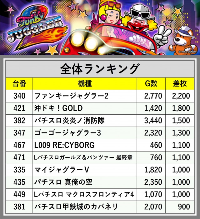 厳選された取材対象機種をはじめ、その他スロット全体から好記録が飛び出した!プレイヤーが楽しんだ1日を下記データにて振り返ってみて欲しい。