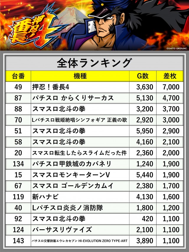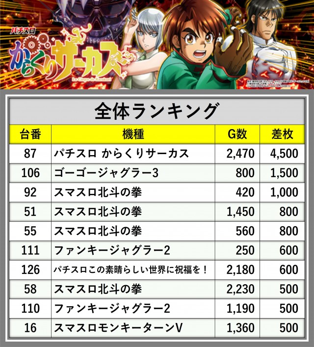 ※差枚数順に掲載しています