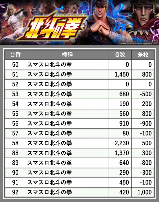 ※台番順に掲載しています