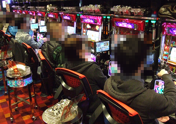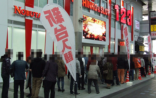 この日の朝イチに集まっていた人数は130名前後。開店を待つプレイヤーの表情は明るく、ホールに大きな期待を寄せていることがうかがえた。