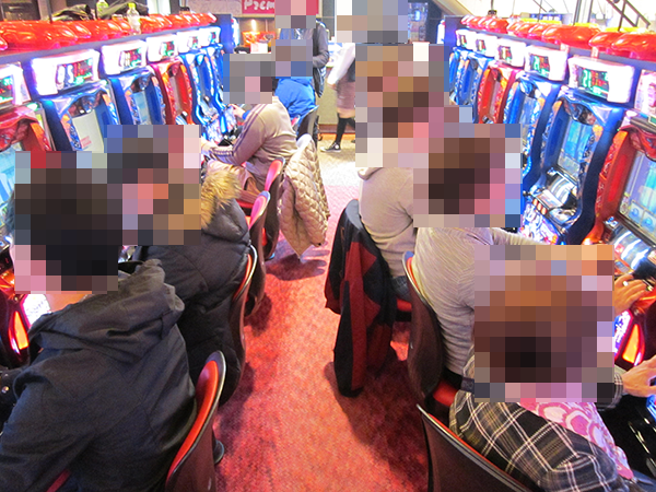 午後の6.25円パチスロは大人気の「バジリスク~甲賀忍法帖~絆」を筆頭に、盛り上がっていた。