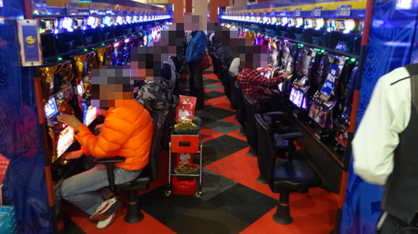 パチンコ・パチスロともに、低貸し玉コーナーもにぎやかな状況。