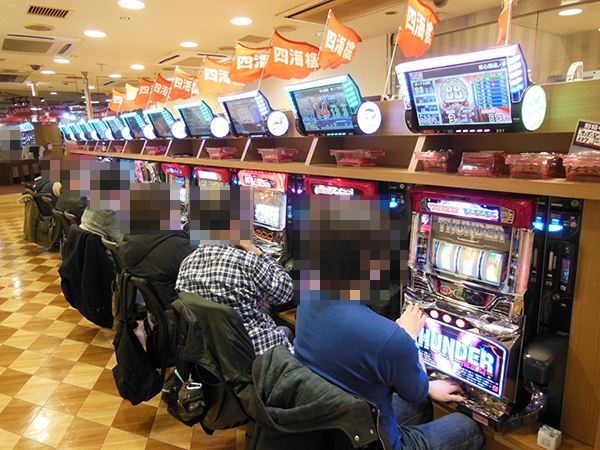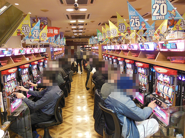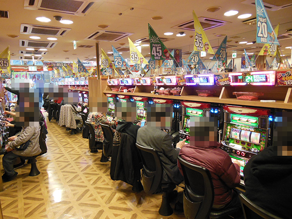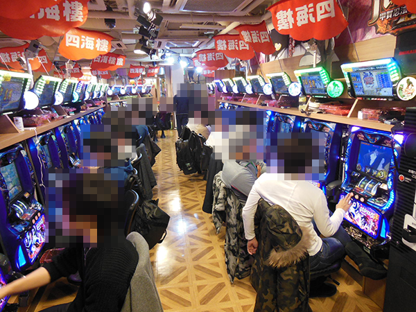 開店から間もない頃の20円パチスロでは、「バジリスク~甲賀忍法帖~絆」やジャグラーシリーズなどがすぐさま満席。