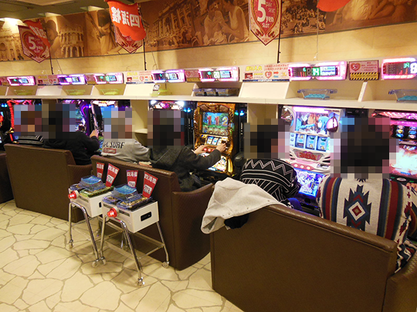 また、ペアシートが設置されている5円パチスロで遊技をはじめる姿もあり、ホール全体が大きく活気づいていた。