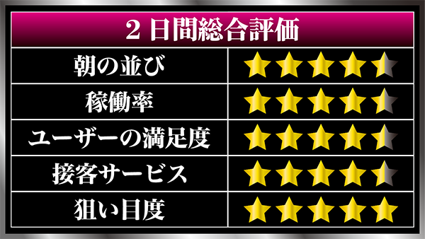 「ミリオンゴッド-神々の凱旋-」や「アナザーゴッドハーデス」など、多くのプレイヤーが明るい表情で遊技をおこなっており、充実した時間を過ごせていたように思う。