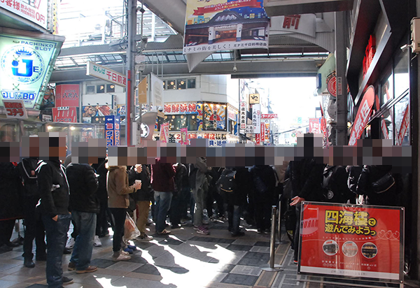 REAL取材Ωの2日目となる5日も、開店前から大勢のプレイヤーが集合。開店時には、およそ140名が入店していった。