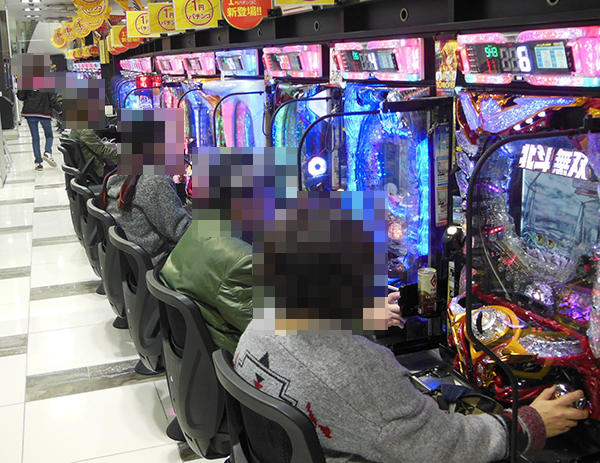 14時頃の4円パチンコをみると、「ぱちんこCR真・北斗無双」や「CR花の慶次X~雲のかなたに~」が盛況。遊技をおこなうプレイヤーたちの表情は明るく、充実感を得られているように思えた。