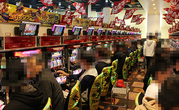 定番機種のジャグラーシリーズも活気づいており、プレイヤーたちは充実した時間を過ごせているように思えた。
