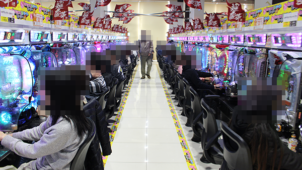 舞台となった「イルサローネ藤井寺店」では、たくさんのプレイヤーが遊技を楽しんでおり、明るい雰囲気が広がっていた。