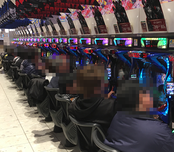 「CRぱちんこ GANTZ」や「CR花の慶次X~雲のかなたに~」から楽しい雰囲気が感じられ、笑顔のプレイヤーも多かった。