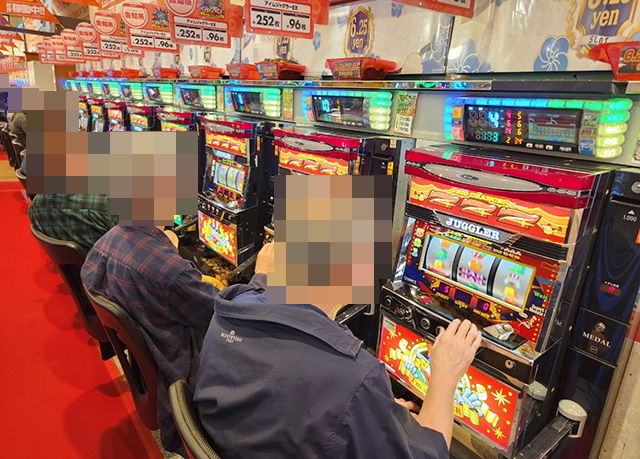 「アイムジャグラーEX」も人気があり、持ち玉で遊技をおこなうプレイヤーが多かった。