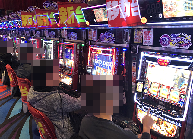 「スマスロ ゴッドイーター リザレクション」も空き台は少なく、活気が大きかった。