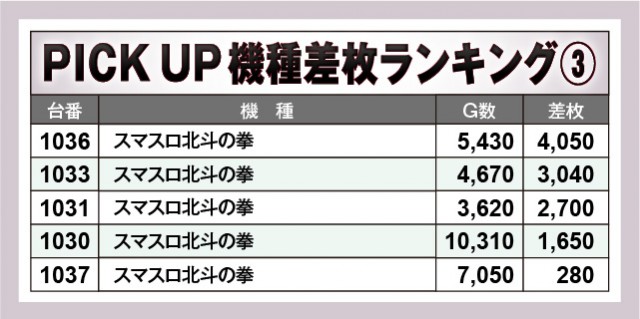 『沖ドキ!BLACK』『沖ドキ!GOLD-30』はじっくりと打ち込まれており、ボーナス当選もコンスタントだったのが窺える。特に前者はファンが相当な手応えを感じていた様子で、それは回転数によく表れている部分だ。また人気機種『スマスロ北斗の拳』も万回転OVERが発生しており、期待が確信へと変わっていたに違いない。