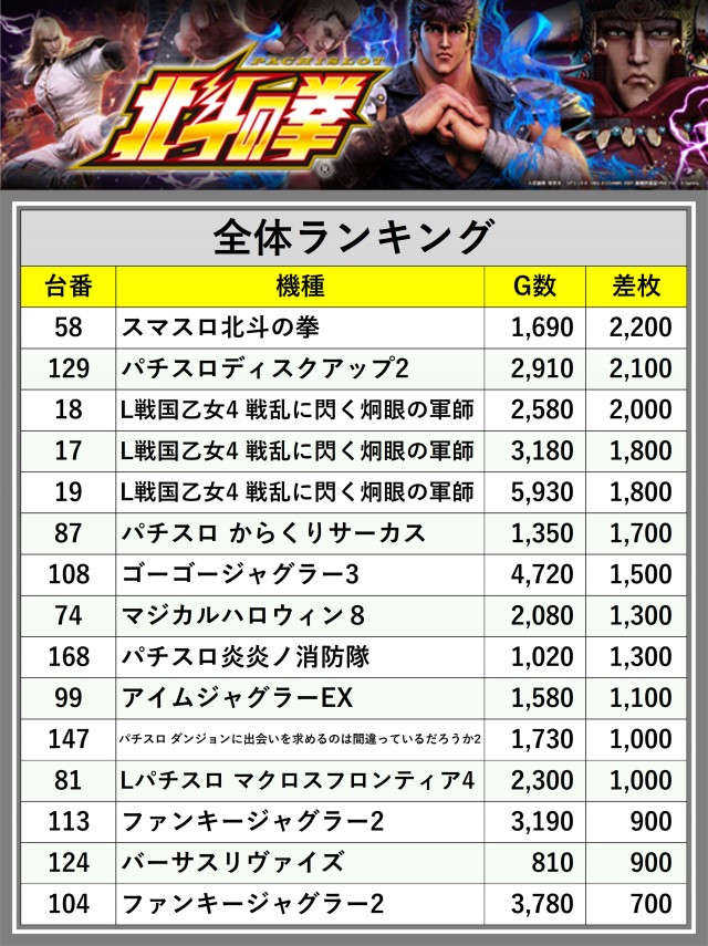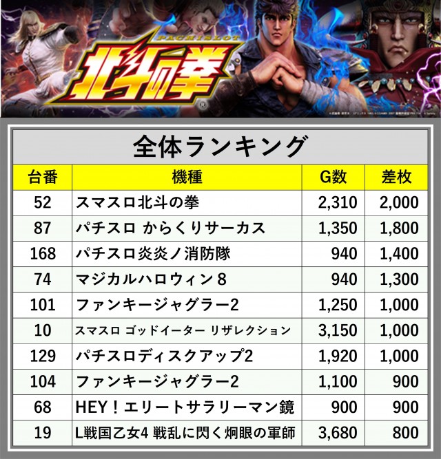 厳選された取材対象機種をはじめ、その他スロット全体から好記録が飛び出した!プレイヤーが楽しんだ1日を下記データにて振り返ってみて欲しい。