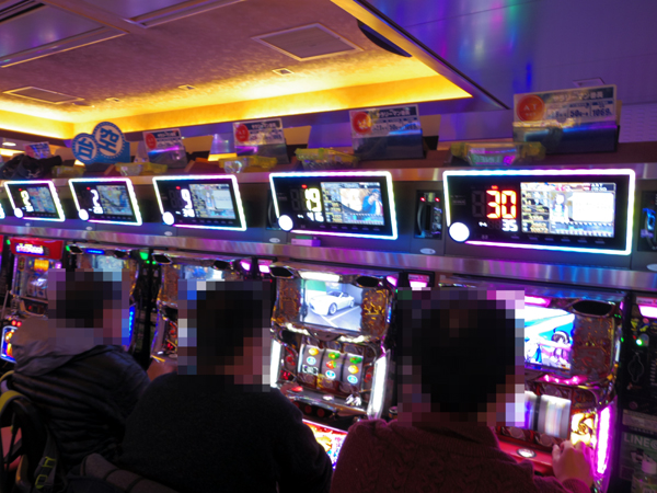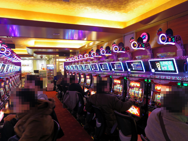 20円パチスロでは、ジャグラーシリーズが人気。どのプレイヤーも表情が明るく、充実した時間を過ごせている様子だった。