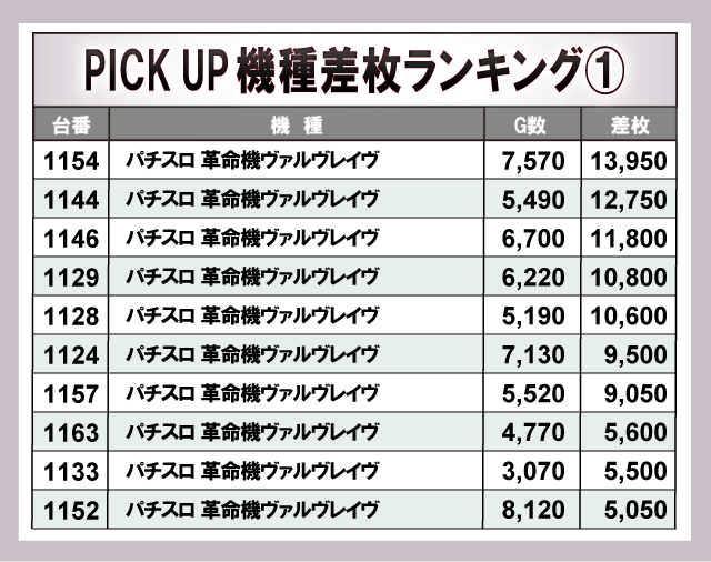 ※差枚数順に掲載しています。