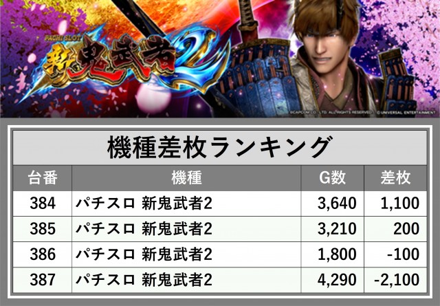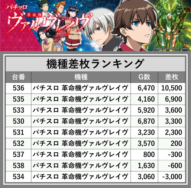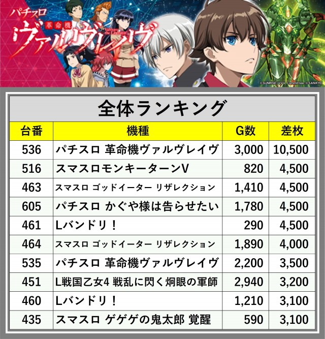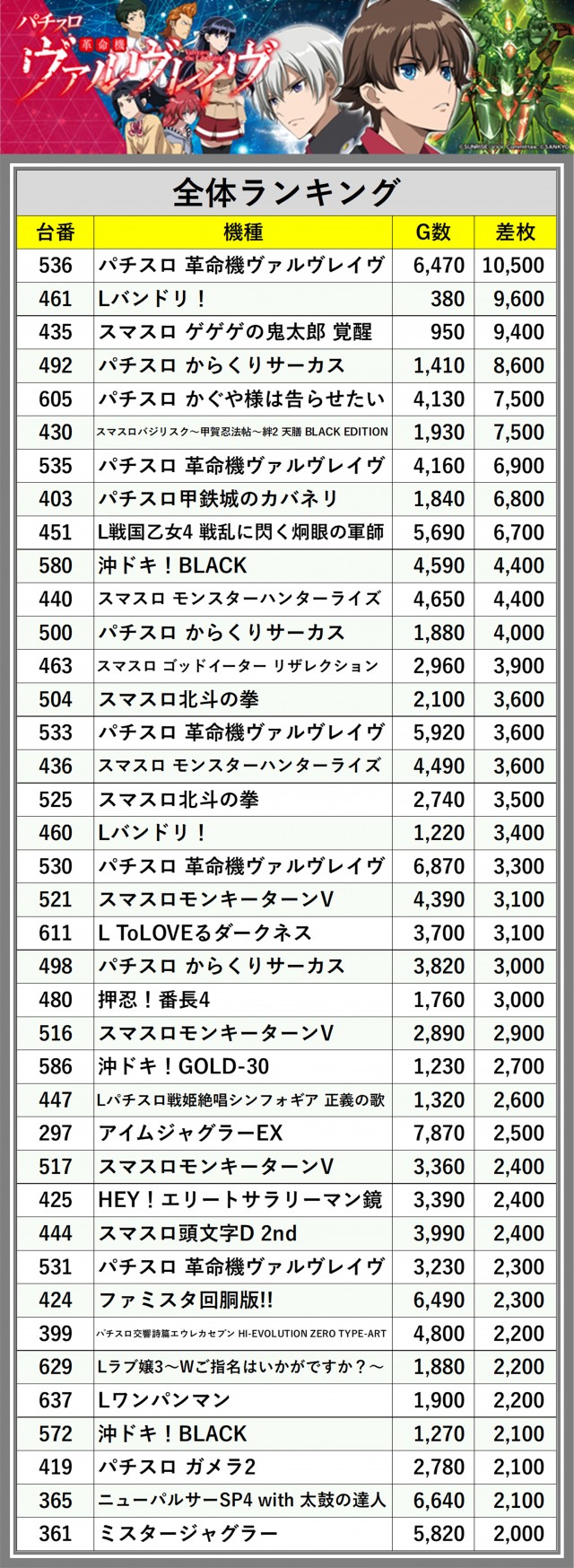 ※差枚数順に掲載しています