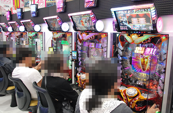 14時をまわった頃の4円パチンコでは、「ぱちんこCR真・北斗無双」や「CRぱちんこ GANTZ」など、盛況となっている機種が多数。