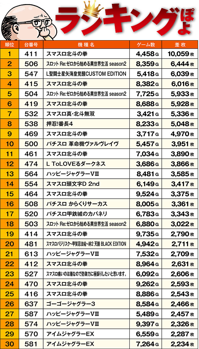 トータル差枚ランキング…ぽよ!