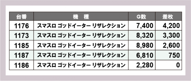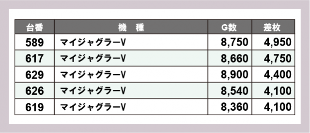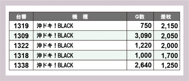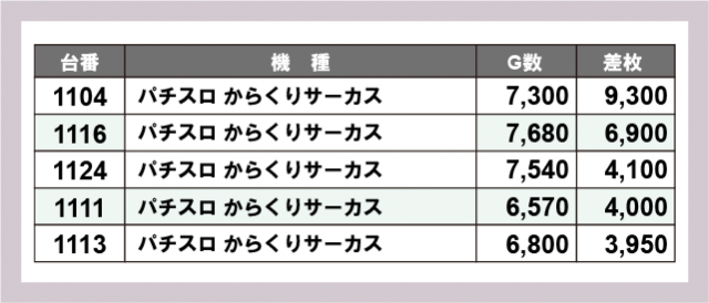 ※差枚数順に掲載しています